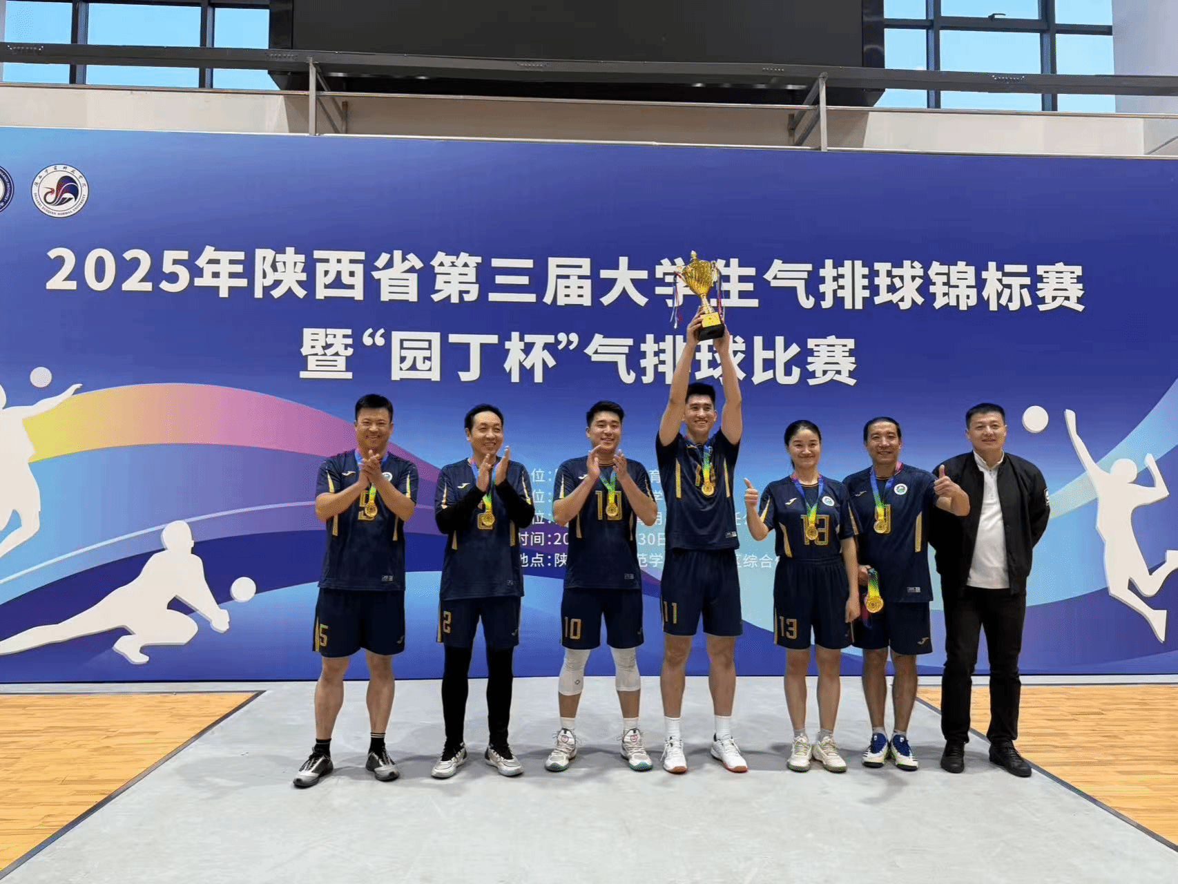 本网讯 近日,由陕西省教科文卫体工会主办的“中国梦·劳动美——凝心铸魂跟党走 团结奋斗新征程”2025年陕西省教科文卫体系统职工羽毛球比赛在西北农林科技大学落下帷幕,来自全省高校、科研院所及文卫体单位的57支代表队参加了比赛,我校教职工羽毛球队历经三天的激烈角逐,最终获二等奖。 2025年陕西省第三届大学生气排球锦标赛暨“园丁杯”气排球比赛在陕西学前师范学院举办,我校教职工气排球代表队凭借出色表现,成功卫冕“园丁杯”冠军。