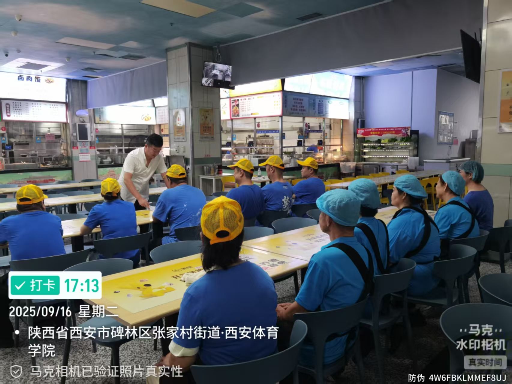 强化员工培训,推行“十统一六到位” 我们组织餐厅全体员工开展“十统一六到位”管理模式专题学习,通过集中培训、现场演练等形式,提升从业人员专业技能与责任意识,推动食堂标准化、规范化运行。