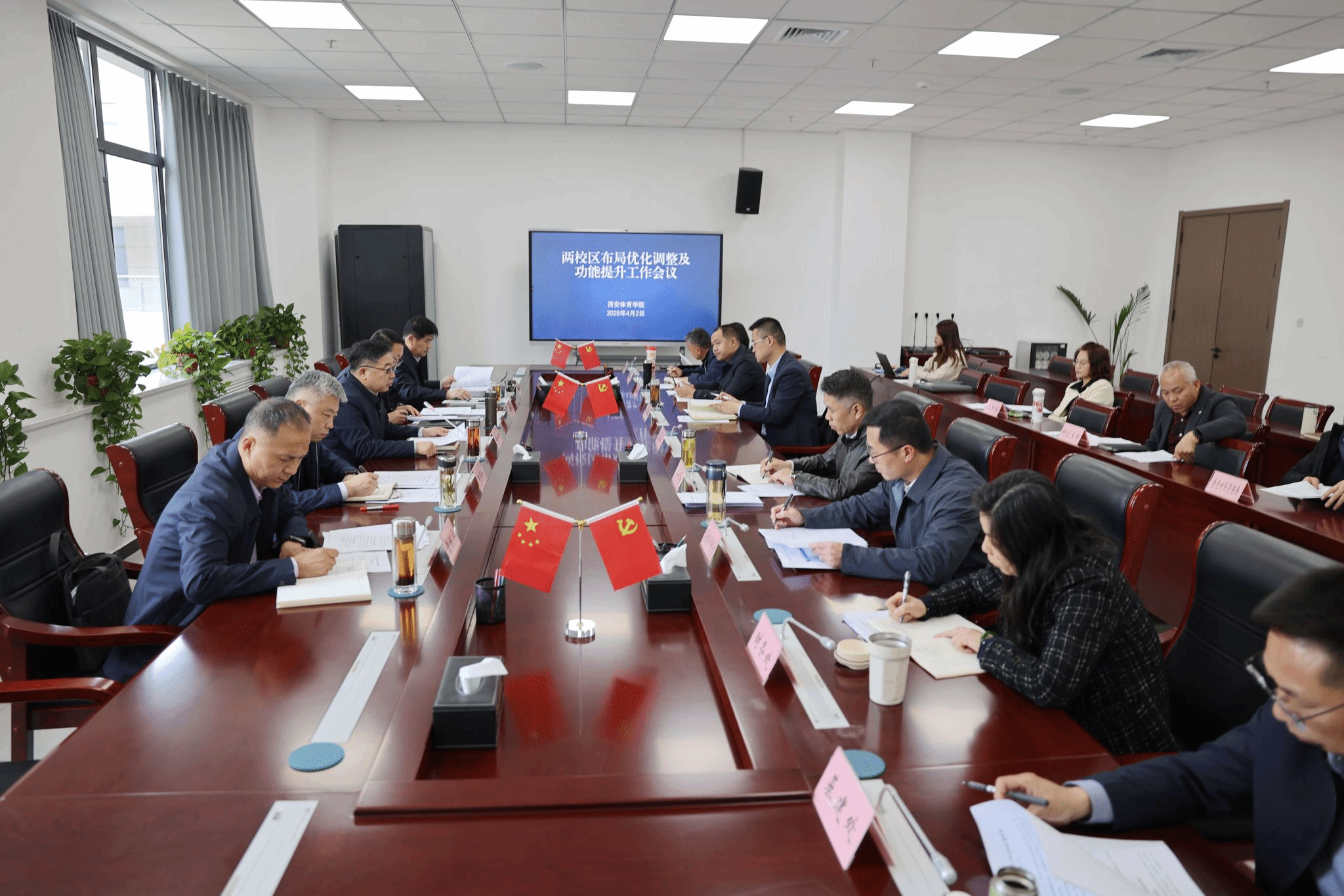 会议指出,两校区布局调整是关乎学校未来发展的重大工程,事关办学根基与长远命运,要统一思想认识,切实增强两校区布局优化调整的紧迫感。要加强顶层设计,站在学校改革发展的立场,按照“十五五”规划,推进“三九战略”,“强特色、补短板、创一流”行动计划,实施办学环境革新工程、数智校园和民生工程,高标准完善校园整体规划,精准明晰校区功能定位与重点建设项目,着力提升两校区功能定位规划的科学性。要理顺体制机制,牢牢把握创收与教学、科研、训练的平衡关系,坚持保障教学、科研、训练优先,建立创收反哺科训的良性机制,完善绩效导向的资源分配机制,推动各项高效协同、一体推进。要坚持内涵发展、特色办学,推进资源集约利用,优化资源配置结构,切实提升资产使用效能,破解资源分散、布局失衡等问题,实现两校区优势互补、协同联动、各展特色,为学校学科建设、人才培养、科研与社会服务提供坚实保障。