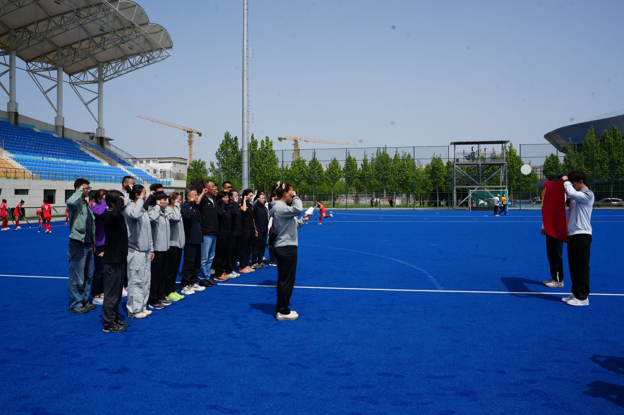 国家队领队郭红介绍,中国女子曲棍球队素有“冰山雪莲”之美誉,近年来更是获得“中央和国家机关四强党支部”“工人先锋号”“全国三八红旗集体”等荣誉称号。中国女曲通过将党建工作与竞赛训练深度融合,走出了一条独具特色的发展之路,在支部建设方面,坚持紧密贴合实际,全方位融入队员的学习、生活与训练,每一位党员都是一面飘扬的旗帜;在赛场上,党员更是充分发挥带动作用,始终保持强大的凝聚力和战斗力,引领团队奋勇拼搏,为荣誉而战;在日常生活中,更是从生活小事入手,将党建理念落到实处。例如,在就餐时,党员们总是主动最后用餐,待队友吃完后,自觉收拾餐盘,保持环境整洁。这些看似微不足道的举动,都彰显了党员的奉献精神和服务意识,让党建工作在细微之处见真章。