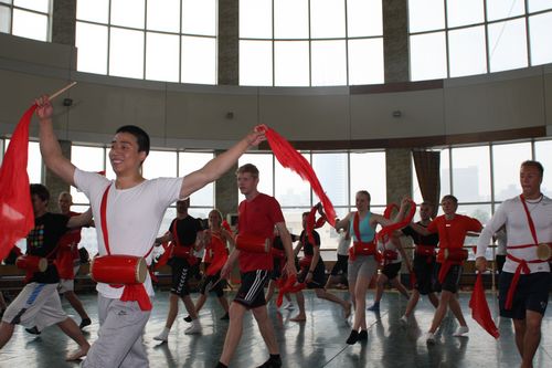 丹麦师生分别与体育艺术系师生学习了陕北腰鼓舞蹈、与武术系马文国主任学习了中华传统武术课程等,我院教师的精彩表演与中国民族传统体育特色课程深深地吸引了来访者,尽管他们的模仿动作还很生硬,但一招一式都透漏着对中国文化的热爱。
