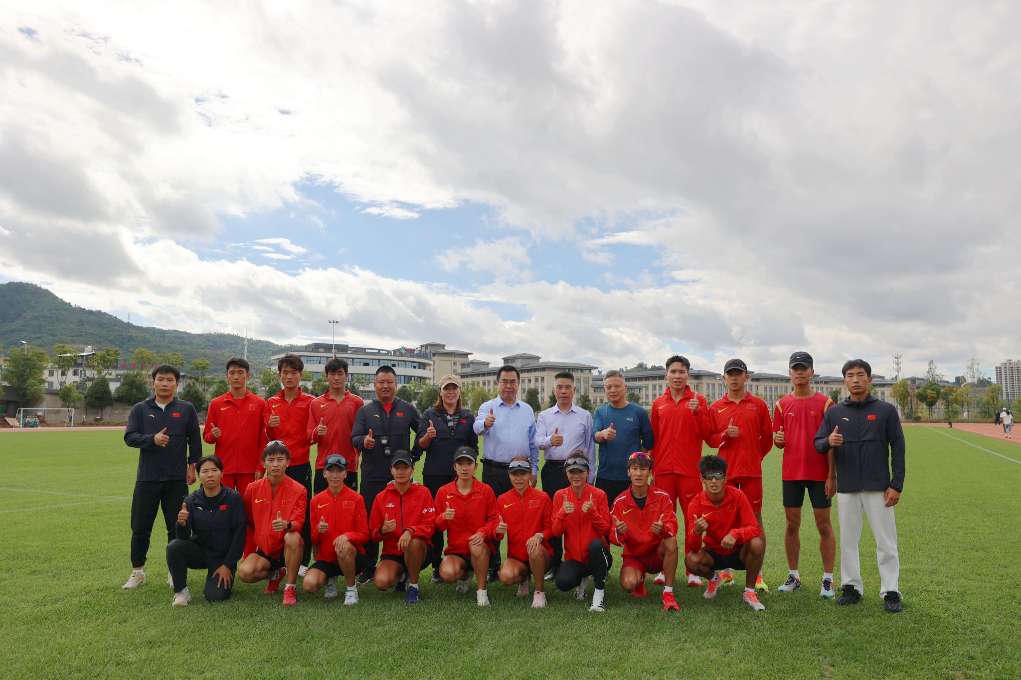 本网讯 10月17日,校长李富生率队赴云南玉溪训练基地,看望慰问正在紧张备战第十五届全国运动会的竞走队全体成员,通过实地观摩训练、听取专项汇报、开展座谈交流等方式,为队伍加油鼓劲并提出备战要求。党委(校长)办公室、竞训处负责人一同调研慰问。