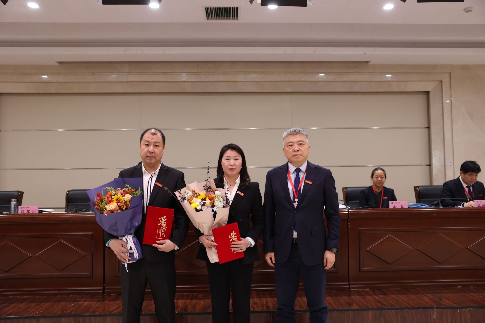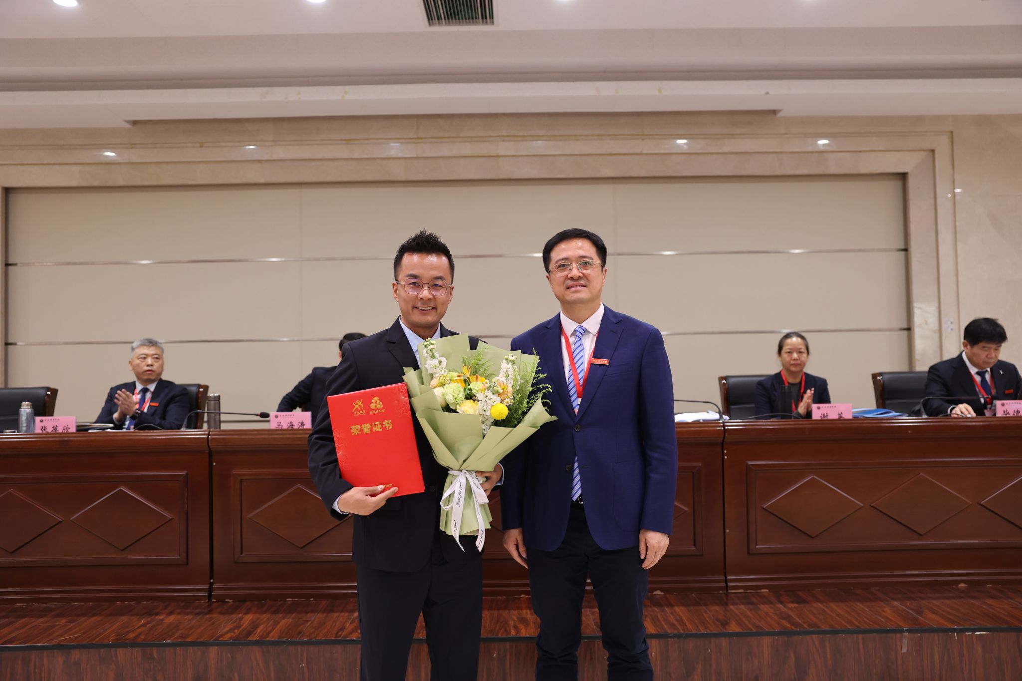 副校长毕德鹏宣读了近期在教学科研竞训等方面优秀教职工表彰名单。校领导为获奖者颁发荣誉证书。