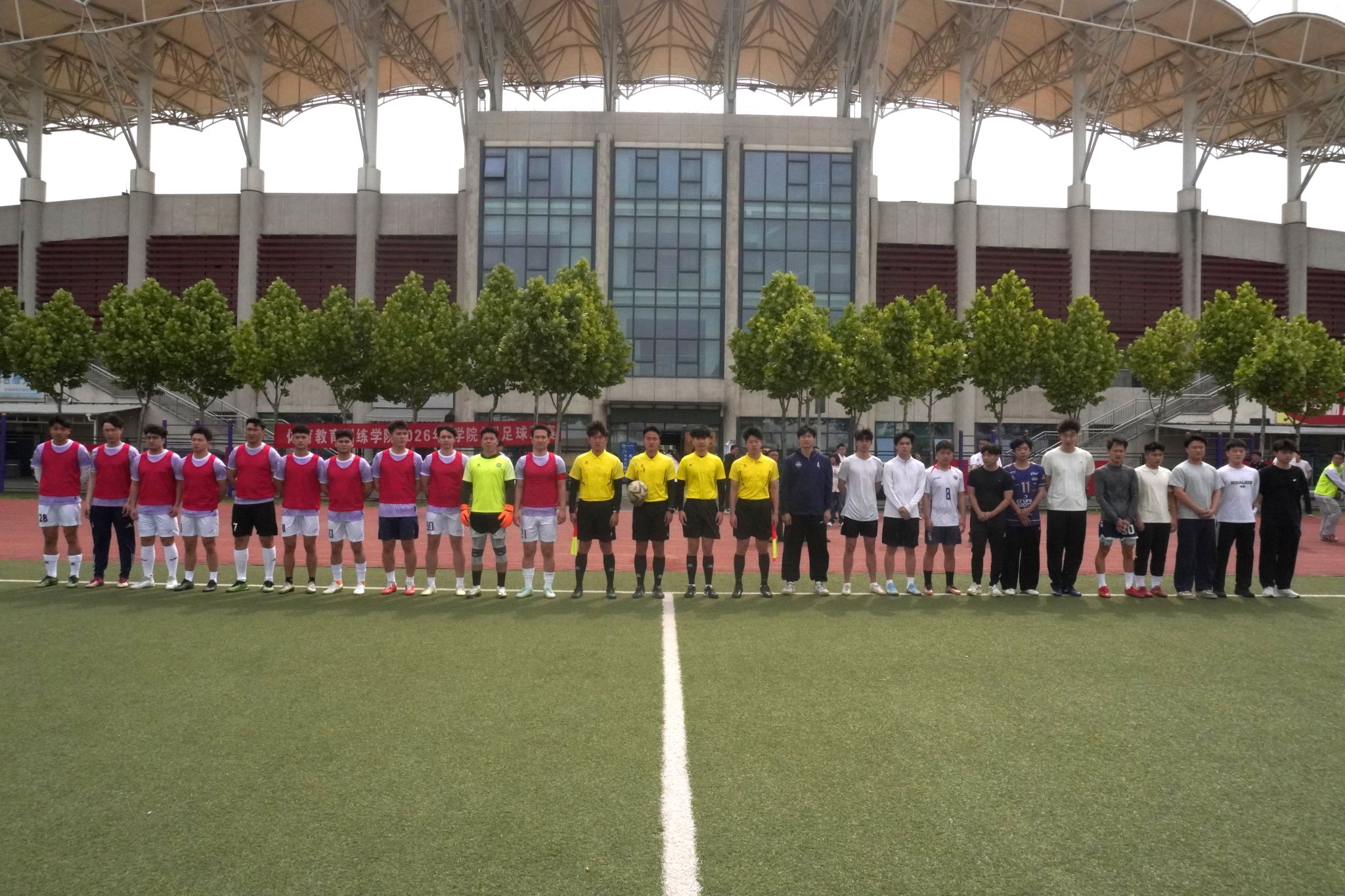 本网讯 春风送暖,绿茵逐梦。为深入贯彻落实国家“三大球”战略,深化“第二课堂”育人实践,4月27日上午,体育教育训练学院“学院杯”足球联赛开幕式在鄠邑校区东区田径场隆重举行。学院党委书记卢喆,执行院长许磊,党委副书记王华,副院长宋耀伟、胡婕婷、高海利出席活动,全体辅导员、裁判员及参赛运动员共同参与。
