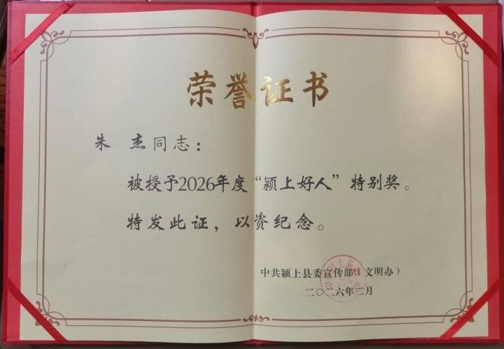 本网讯 近日,体育教育训练学院教师朱杰见义勇为、勇救落水群众的感人事迹引发广泛关注。中共颍上县委宣传部正式发布表彰决定,授予朱杰同志2026年度“颍上好人”特别奖,褒奖其危急时刻挺身而出、舍己救人的英勇行为,并向学校发来感谢函。