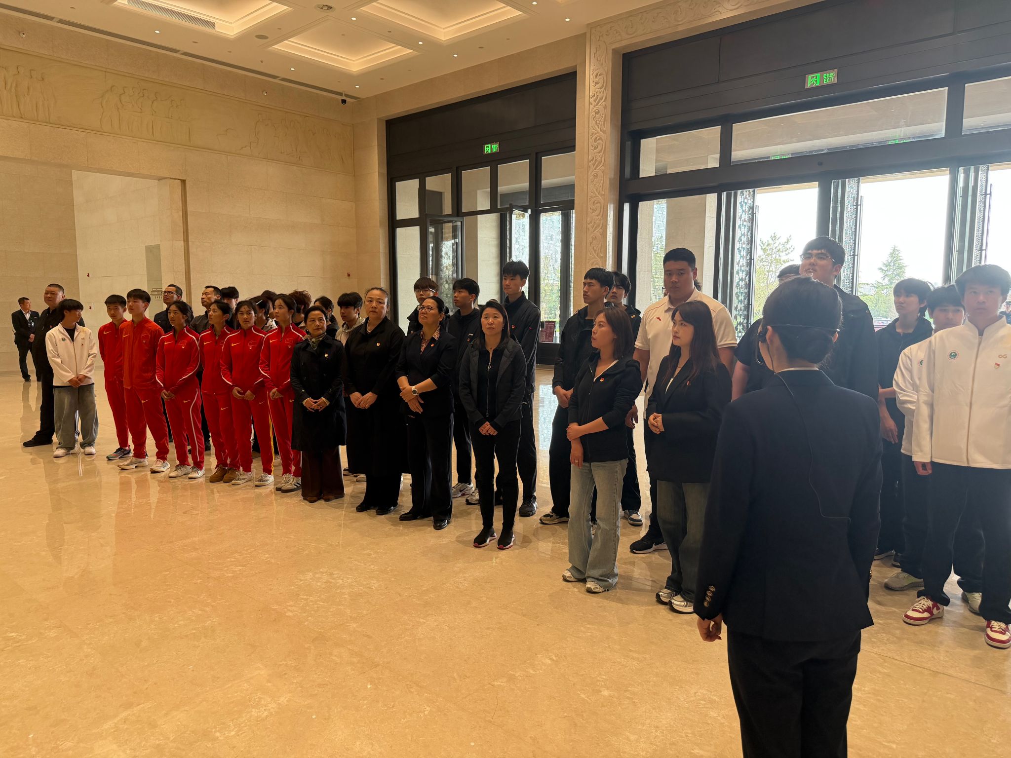 竞技运动学院机关党支部、高水平运动队党支部党员代表、运动员代表及各年级学生代表共同参与此次活动,通过实地瞻仰学习,缅怀革命先辈丰功伟绩,汲取砥砺奋进的精神力量。