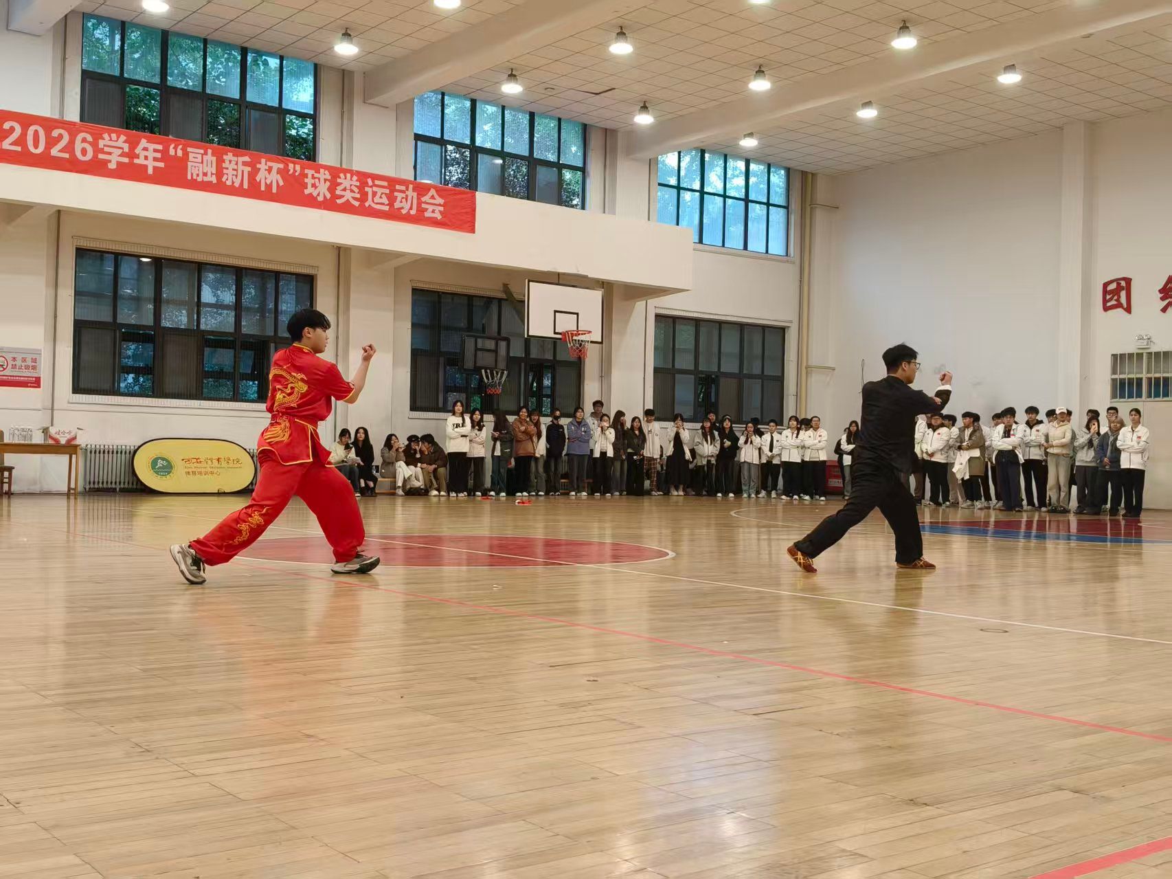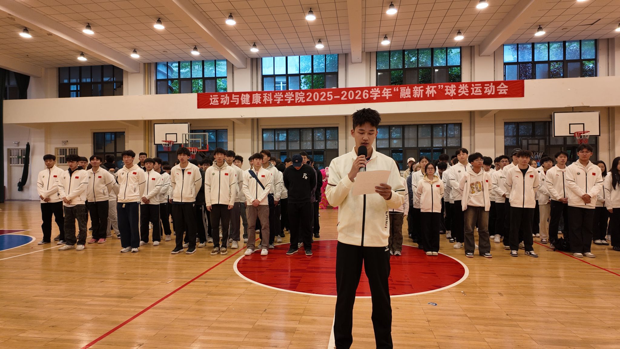 随后,运动与健康科学学院党委书记张鹏华郑重宣布:“融新杯”正式开赛!全场掌声雷动,欢呼不断,青春的赛场正式被点燃。