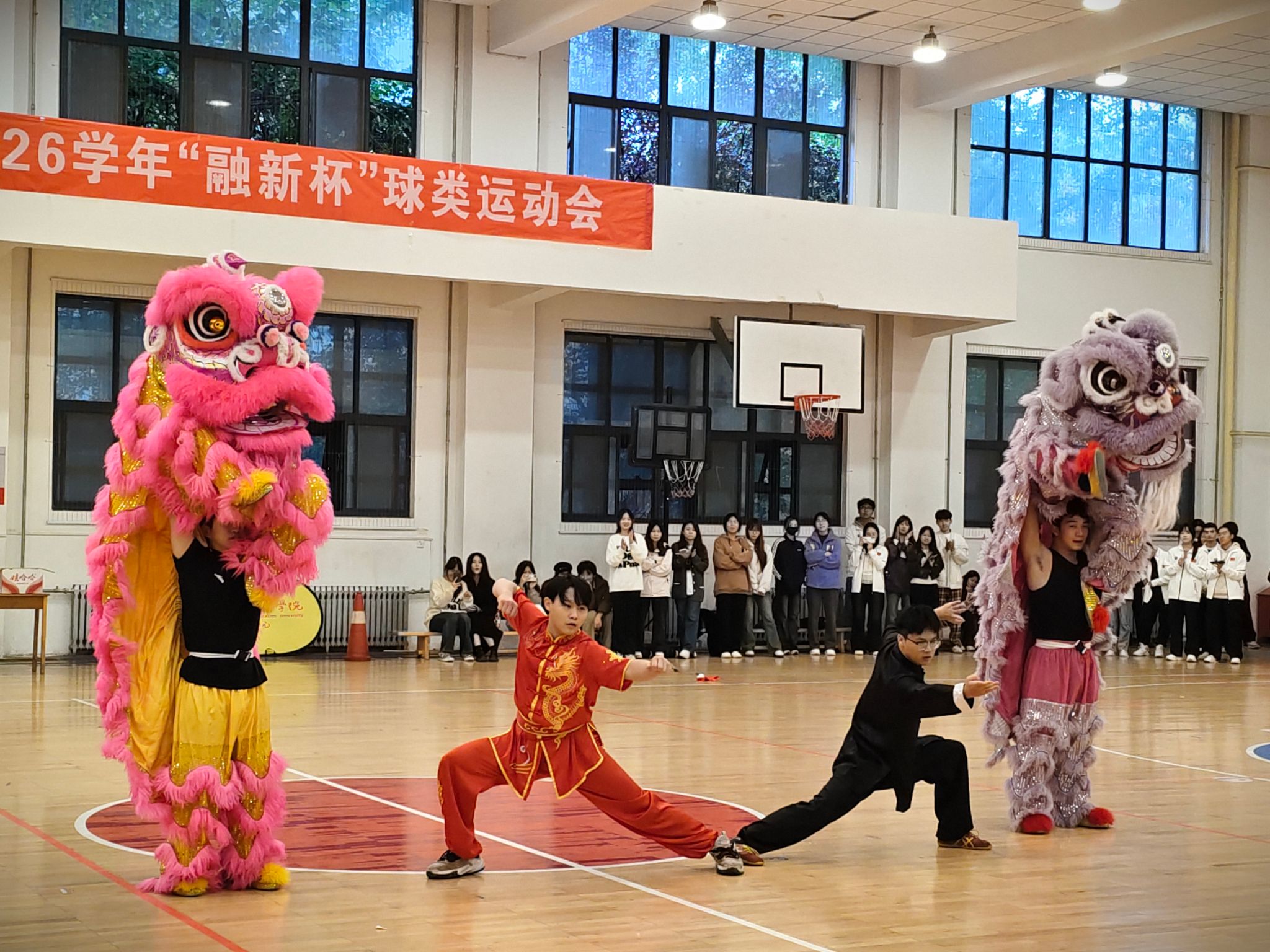 在热烈的氛围中,运动与健康科学学院院长刘军为比赛开球。一颗篮球的抛起,象征着“融新杯”的正式启动,也点燃了每一位参赛选手心中的战火。