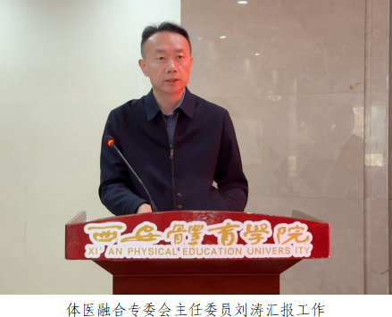 陕西省体育科学学会体医融合专委会主任委员刘涛回顾了专委会成立以来所开展的工作,表示要充分践行“平台+带头人+团队+成果”的四位一体发展模式,为学院人才培养及科研产出作出更大贡献。
