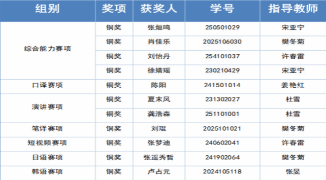 近日,陕西省教育厅办公室公布 2025“外研社・国才杯”“理解当代中国” 陕西省外语能力大赛获奖名单。西安体育学院学子在此次赛事中表现亮眼,凭借扎实的外语功底与出色的实际应用能力,成功斩获 11 项铜奖。