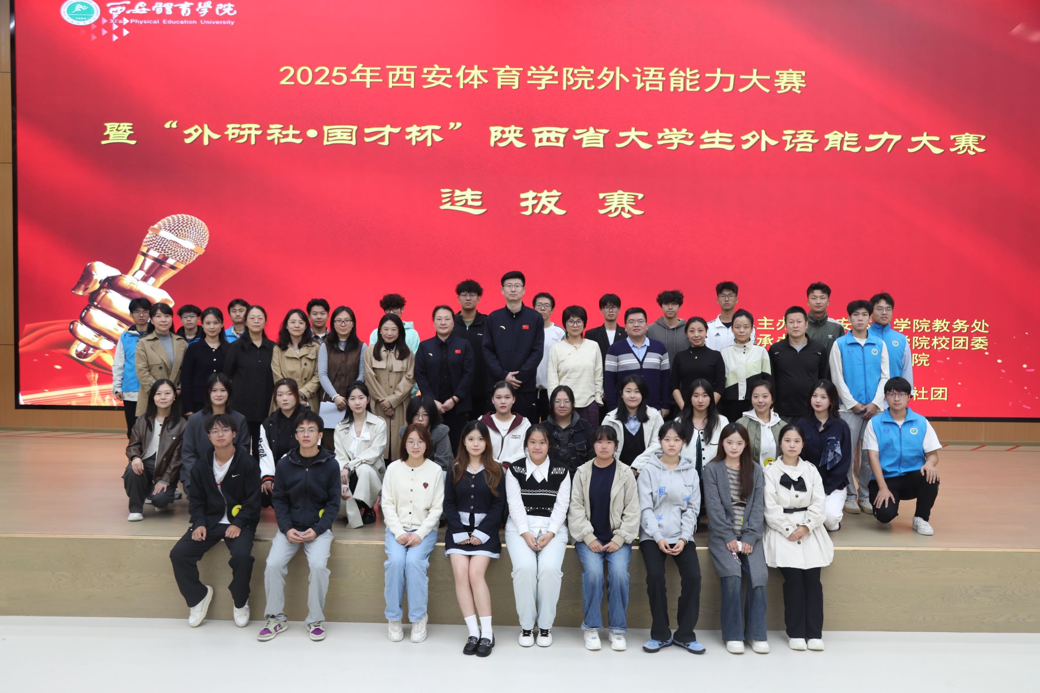 10月11日下午,2025“外研社·国才杯”陕西省大学生英语能力大赛西安体育学院选拔赛决赛在鄠邑校区隆重举行。本次比赛由教务处主办,校团委承办,公共教育学院外语教研室及大学生英语社团协办,旨在开展英语实践,提升学生学习英语的兴趣,选拔优秀选手晋级省赛,展示学校外语教学成果,培养兼具语言能力与国际视野的体育人才。