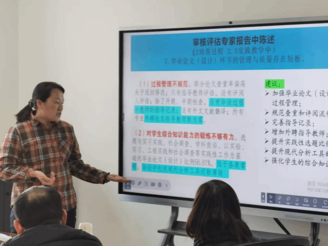会议首先由教务处副处长王春英介绍新修订的本科毕业论文(设计)相关规章制度,从往年论文抽检工作出现的问题,审核评估专家组反馈的论文相关问题,修订制度的出发点和重点等方面,向与会人员详细说明。