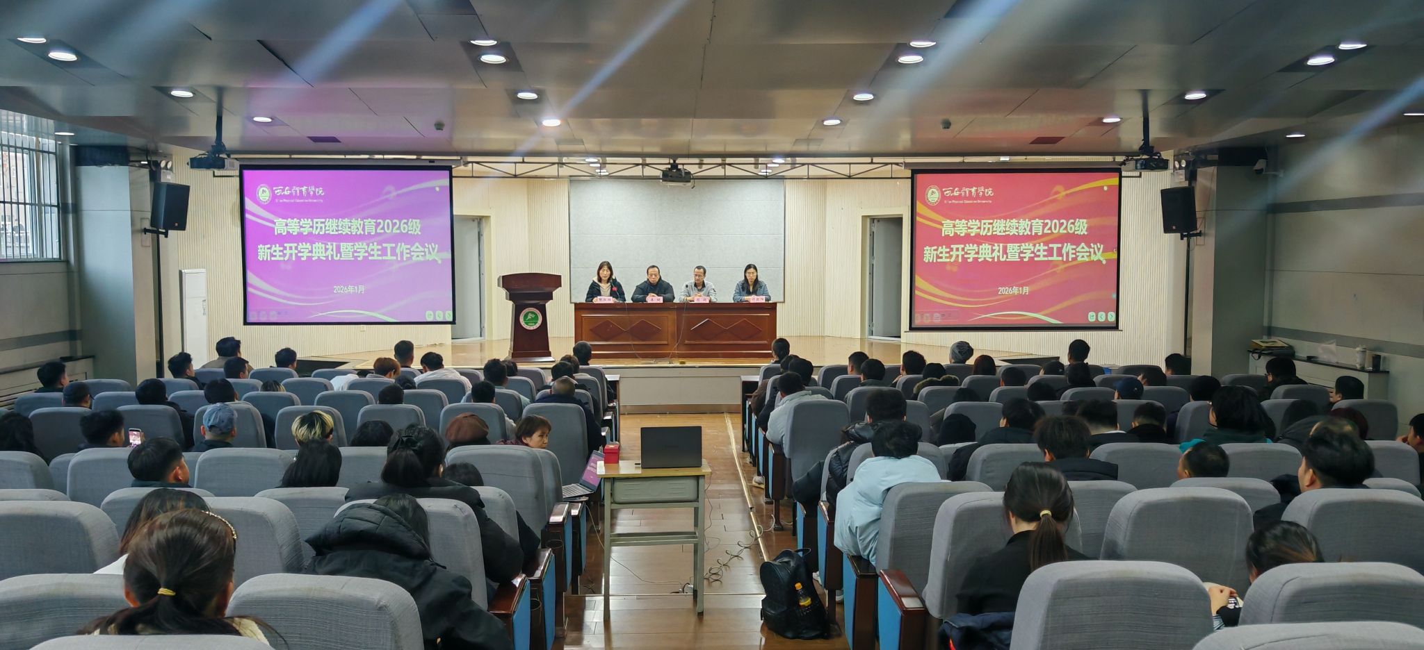 1月14日下午,我校继续教育学院隆重举行2026级新生开学典礼。学院领导、教师代表与全体学生齐聚一堂,共同开启新学期、新征程。