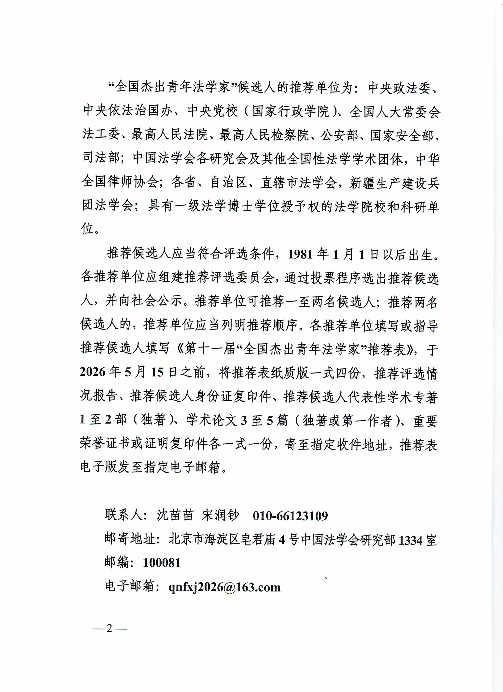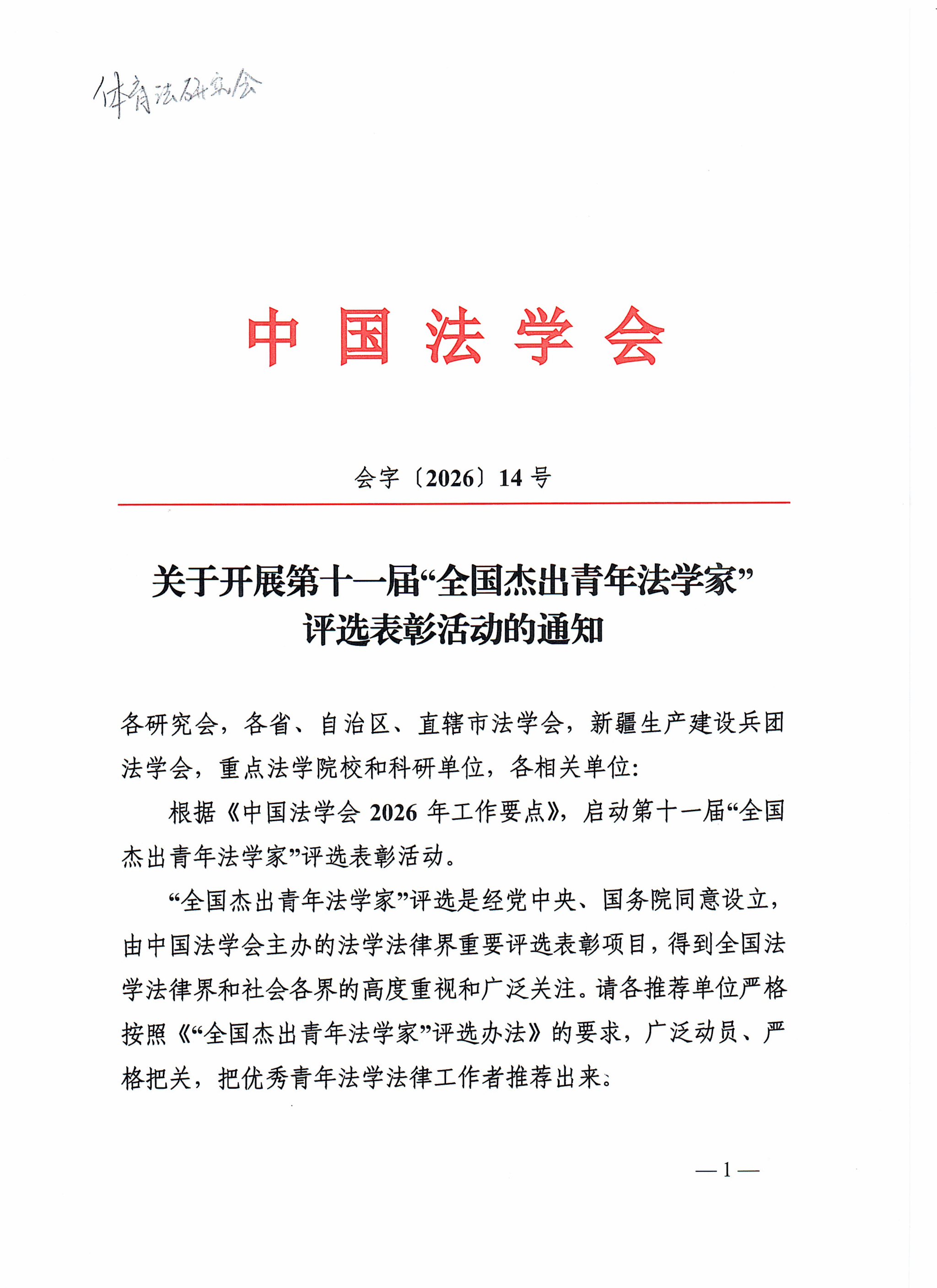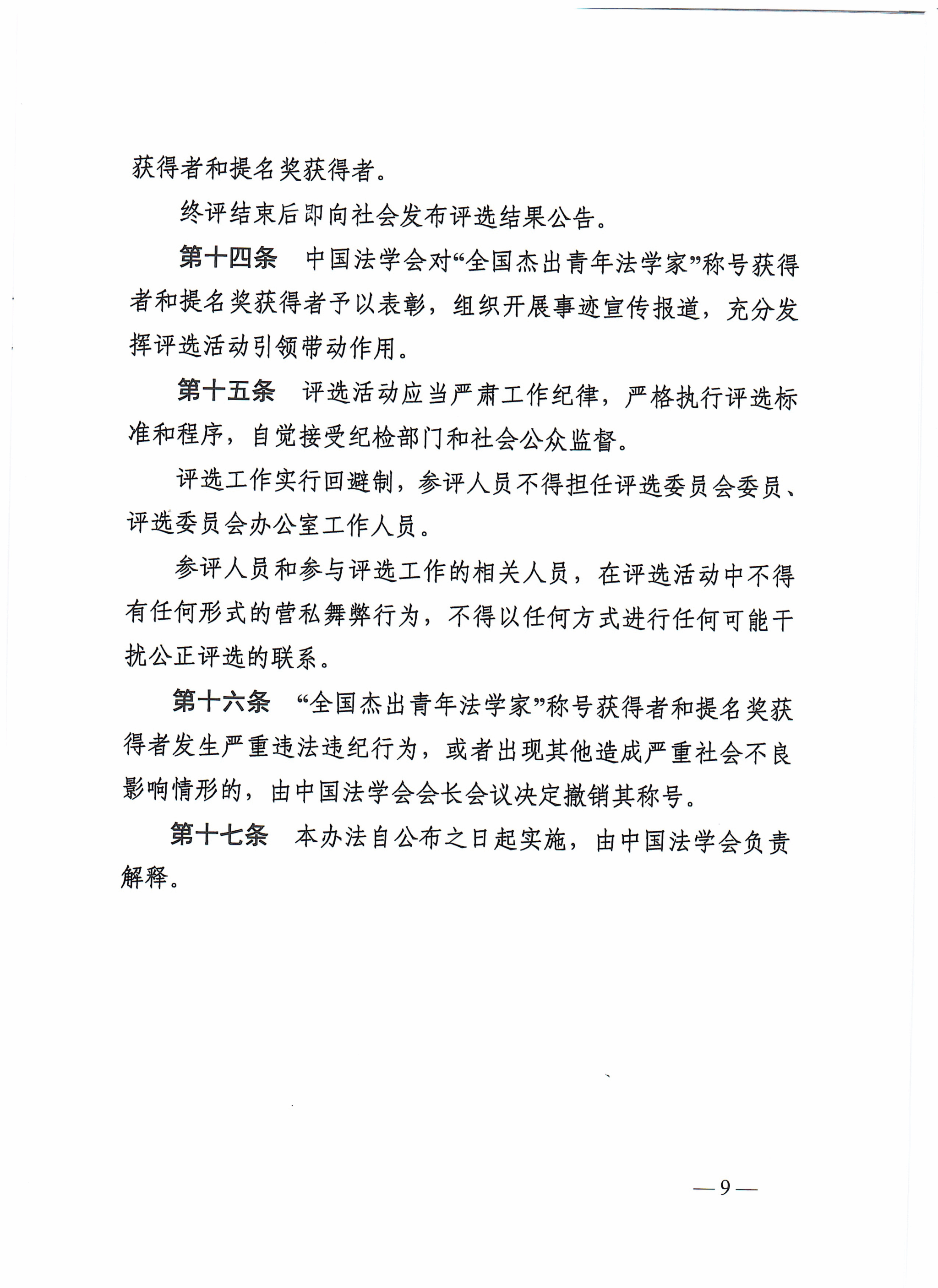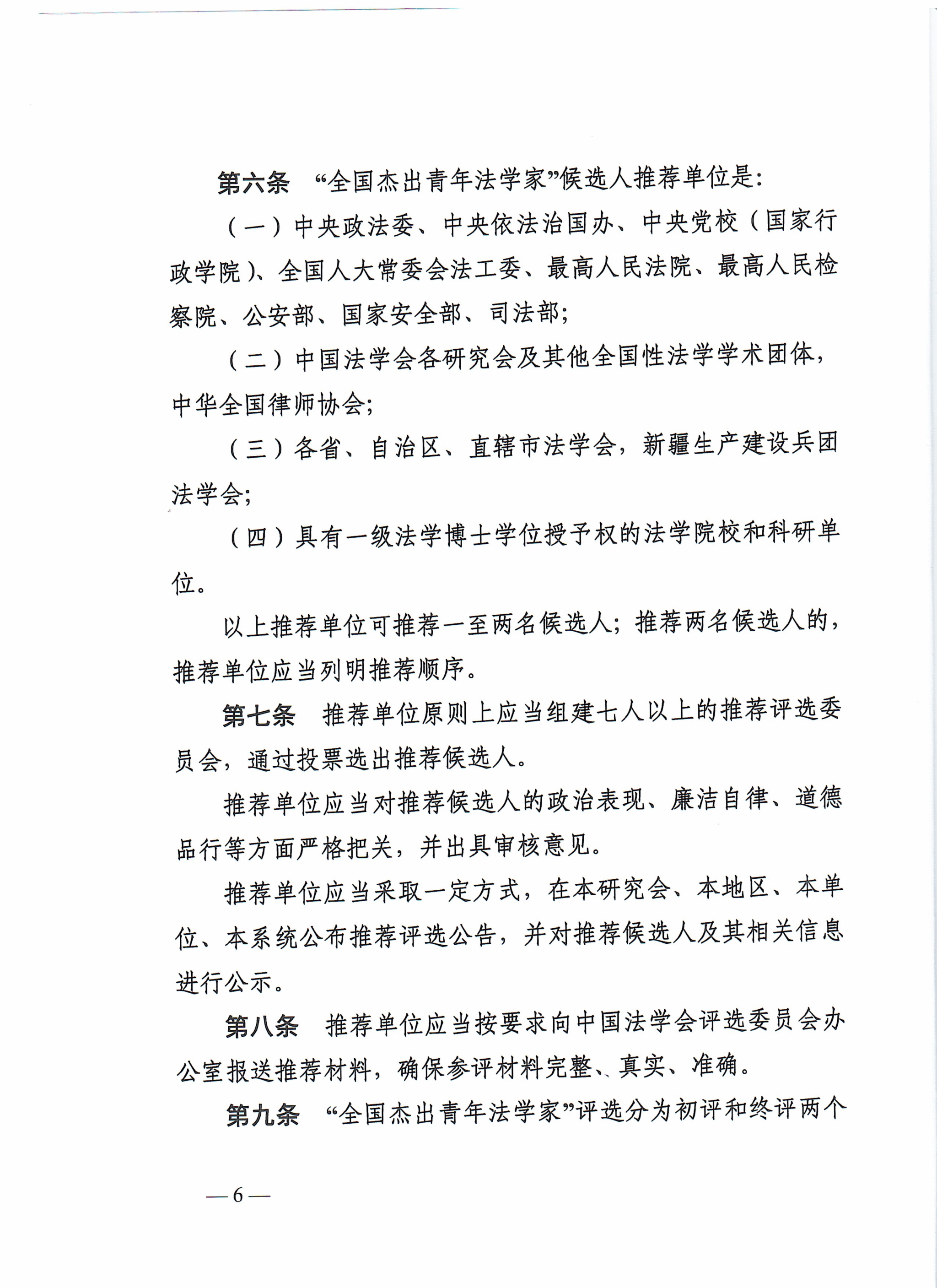 关于开展第届“全国杰出青年法学家” 评选表彰活动的通知