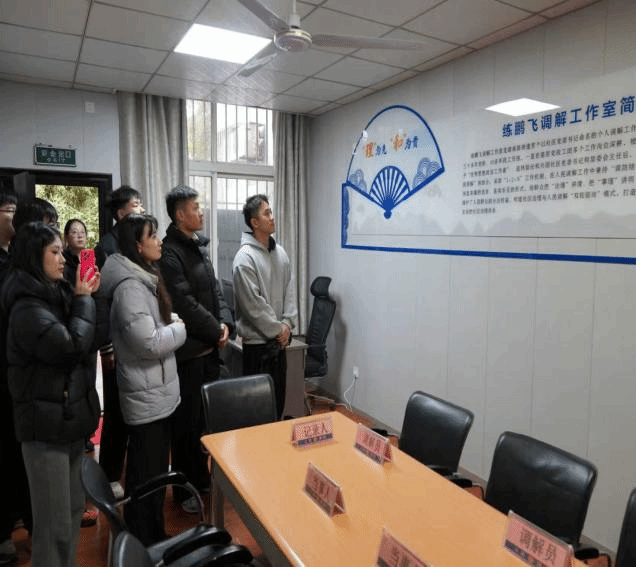 在社区党委书记练鹏飞的引导下,师生们实地参观了社区的服务设施。从整 合多种文体设施的活动中心、图书室,到配备“轮椅餐桌”的适老化智慧食堂、老年康养中心,再到警社联动治安室、和事佬议事室、调解工作室等场所,师生们通过切身观察,对社区精心打造的为民便民利民的服务体系有了更为直观而深刻的认识,感受到基层治理民生温度。