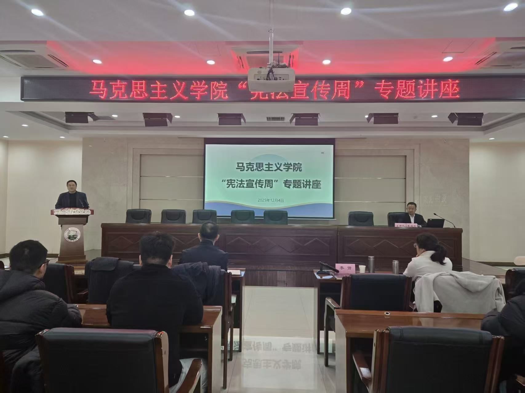 2025年12月4日,在我国第十二个“国家宪法日”暨全国“宪法宣传周”核心活动日之际,马克思主义学院于含光校区2号行政楼六层报告厅成功举办“宪法宣传周”专题讲座。本次活动由马克思主义学院主办,依托陕西省法学会体育法学研究会平台,联合西安体育学院体育法学研究中心共同承办,旨在深入学习贯彻习近平法治思想,推动宪法精神在体育领域的落地生根。