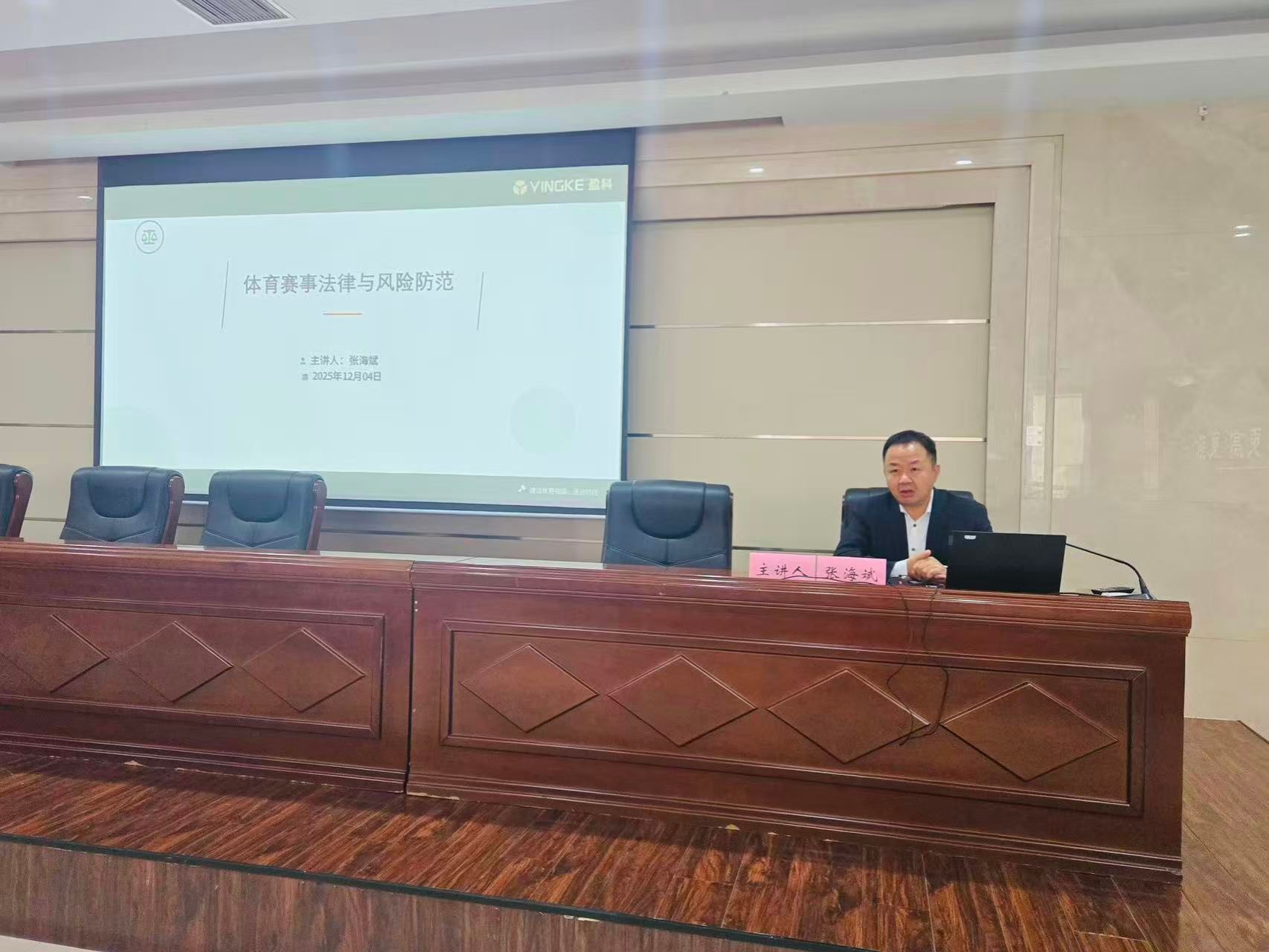 本次讲座特邀北京市盈科(西安)律师事务所管委会主任、陕西省法学会体育法学研究会副会长张海斌担任主讲嘉宾。张海斌系中共党员、法学硕士,兼任陕西省律师协会行业规则委员会副主任、西北政法大学等多所高校客座教授,并担任西安、青岛、中卫仲裁委员会仲裁员,曾荣获“陕西省优秀律师”“陕西省律协优秀专委会副主任”等称号,在体育法学理论与实务领域具有深厚造诣。