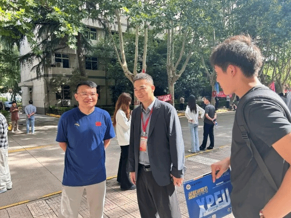 迎新现场,体育经济与管理学院党总支书记杨涛、体育经济与管理学院团委书记兼2025级辅导员霍达早早到场,检查各项准备工作,确保迎新流程顺畅。霍达老师与志愿者们交流,强调要以热情、耐心的态度帮助新生顺利报到,让新生和家长感受到学院的关怀。党总支书记杨涛与新生及家长面对面交流,倾听需求,耐心解答入学疑问为新生开启校园生活筑牢温暖开端。