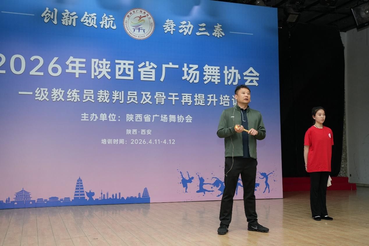 4月11日至12日,舞蹈教研室张敏教授和娄山副教授参加了由陕西省广场舞协会主办的2026年陕西省广场舞协会广场舞一级教练员、裁判员及骨干再提升培训班。本次培训为夯实全省广场舞专业人才基础,规范行业发展标准,以专业技能赋能基层群众文化建设、服务全民健身事业发展,与全省各地的广场舞骨干、教练员、裁判员齐聚一堂,共同开启了一场专业提升的进阶之旅。