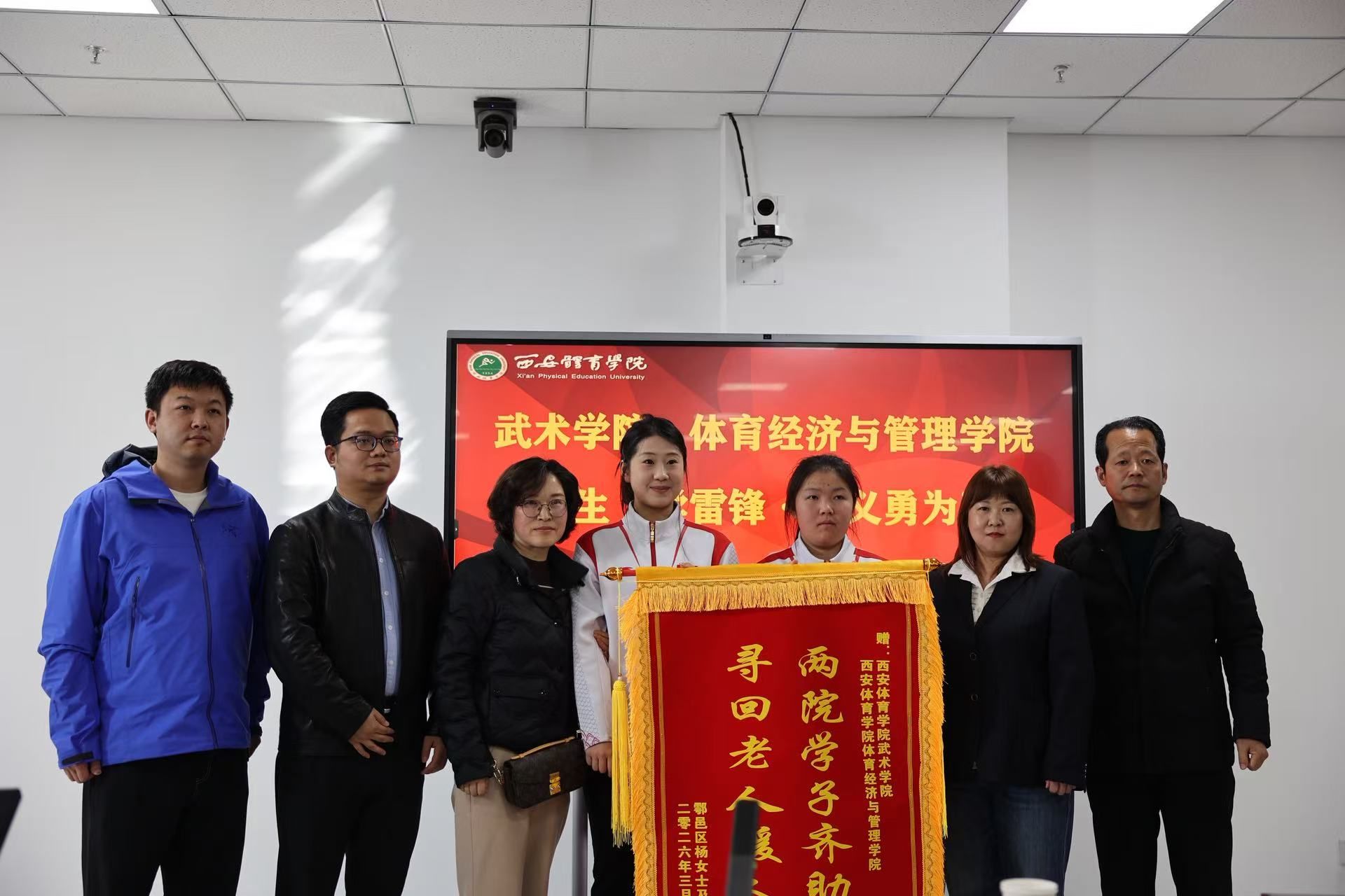 三月春风暖人心,雷锋精神润无声。近日,我院学子高雨彤、黄方心同学与体育经济与管理学院薛晗同学在鄠邑区沣京路连续救助两名遇困老人的感人事迹,受到了老人家属的诚挚感谢与校内外广泛赞誉。她们以实际行动,深刻诠释了我院“尚武崇德、知行合一”的教育精神,为新时代雷锋精神写下了鲜活的武术青年注脚。