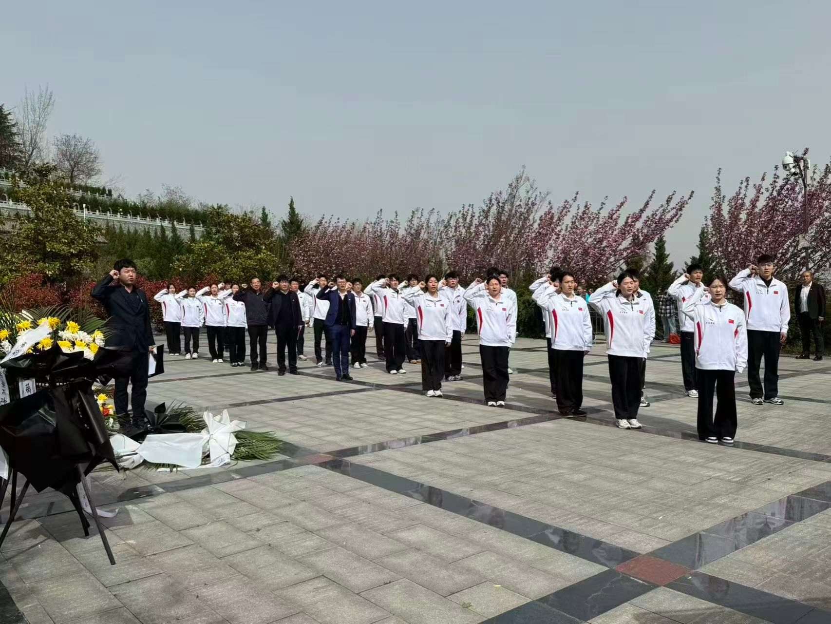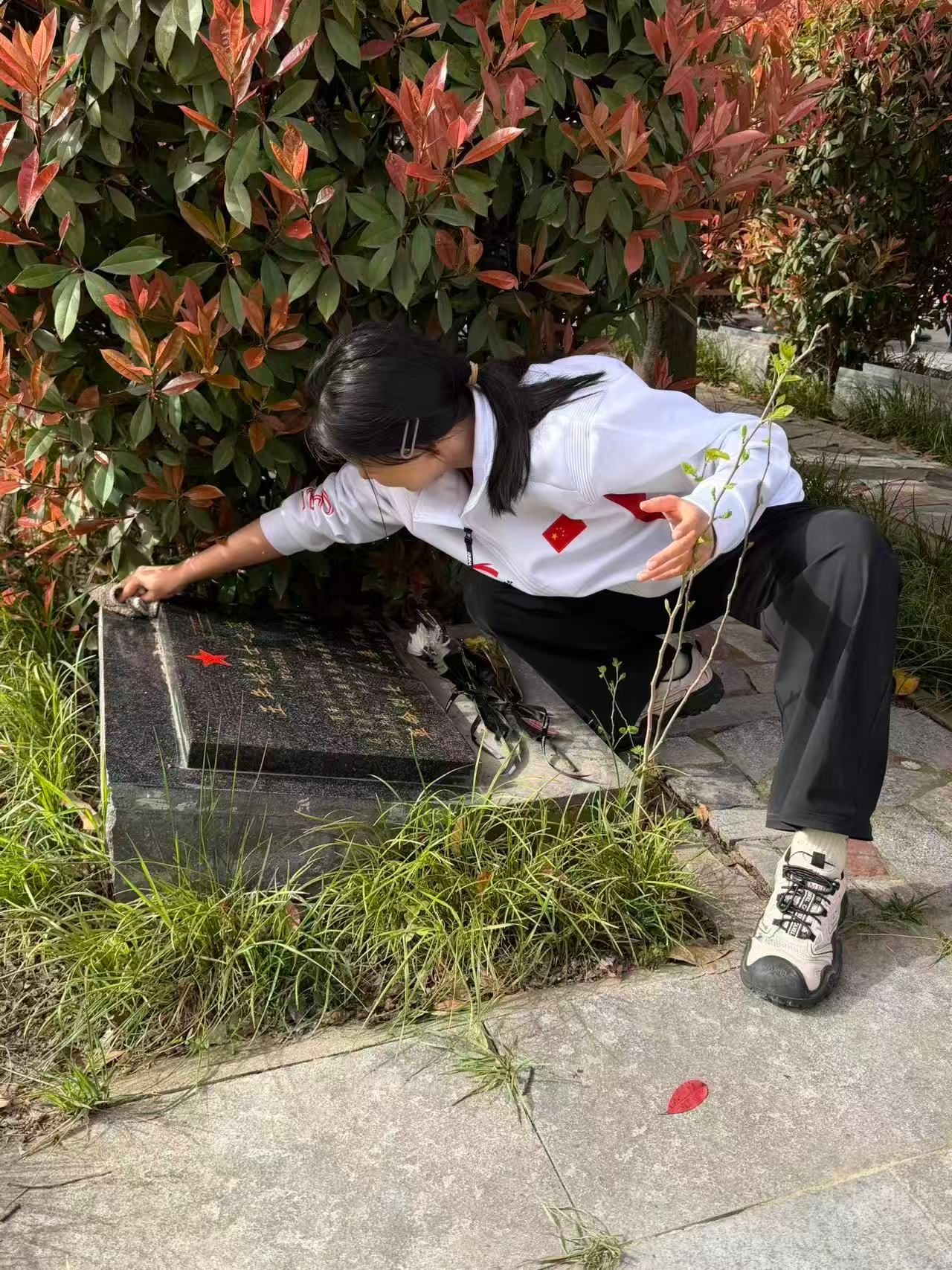祭扫仪式开始前,武术学院师生分组对烈士墓碑及园区进行擦拭清扫,用实际行动表达对先烈的崇高敬意。
