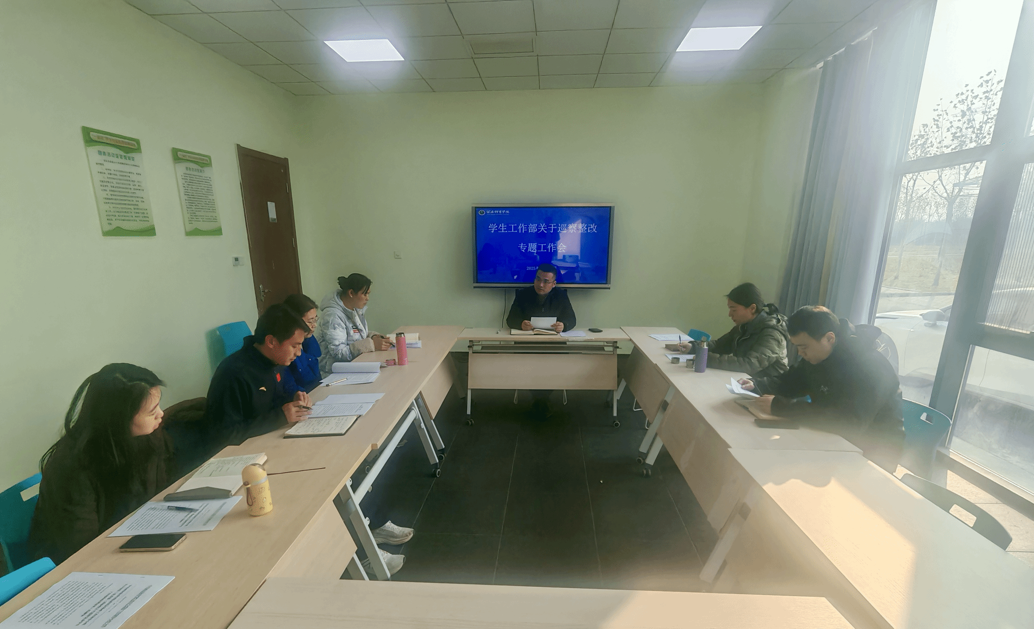 12月11日下午3点,党委学生工作部在鄠邑校区团体辅导室召开巡视整改推进专项会议,全面落实学校巡视整改工作要求,聚焦学生工作中的突出问题,以扎实有效的举措推动学生工作高质量发展。学工部班子成员及各科室负责人参加会议。
