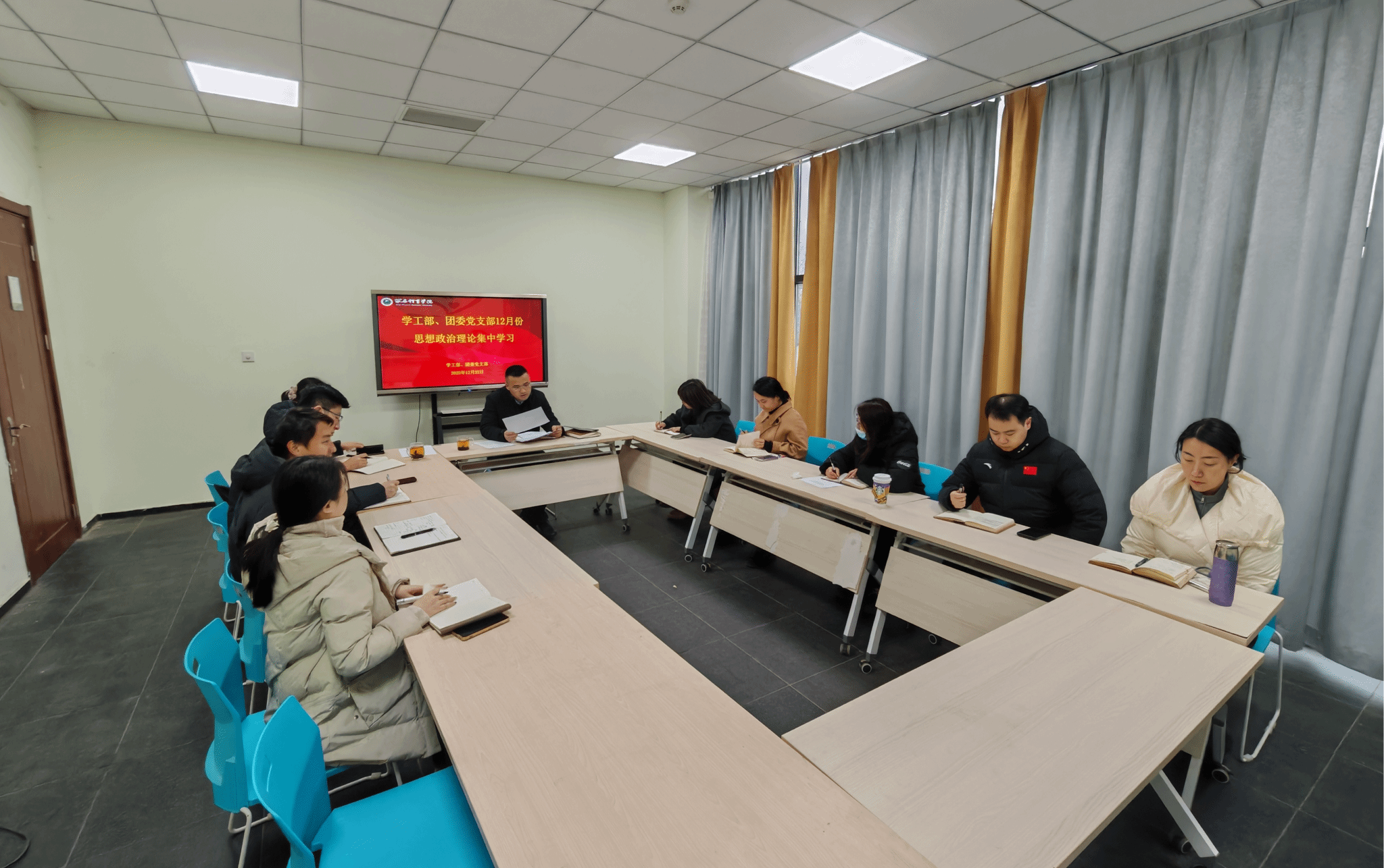 为深入学习贯彻习近平新时代中国特色社会主义思想,切实提升学团干部政治素养和履职能力,12月22日上午,学工部、团委党支部组织全体党员开展集中学习,聚焦核心思想领悟与作风建设要求,推动学习教育走深走实。