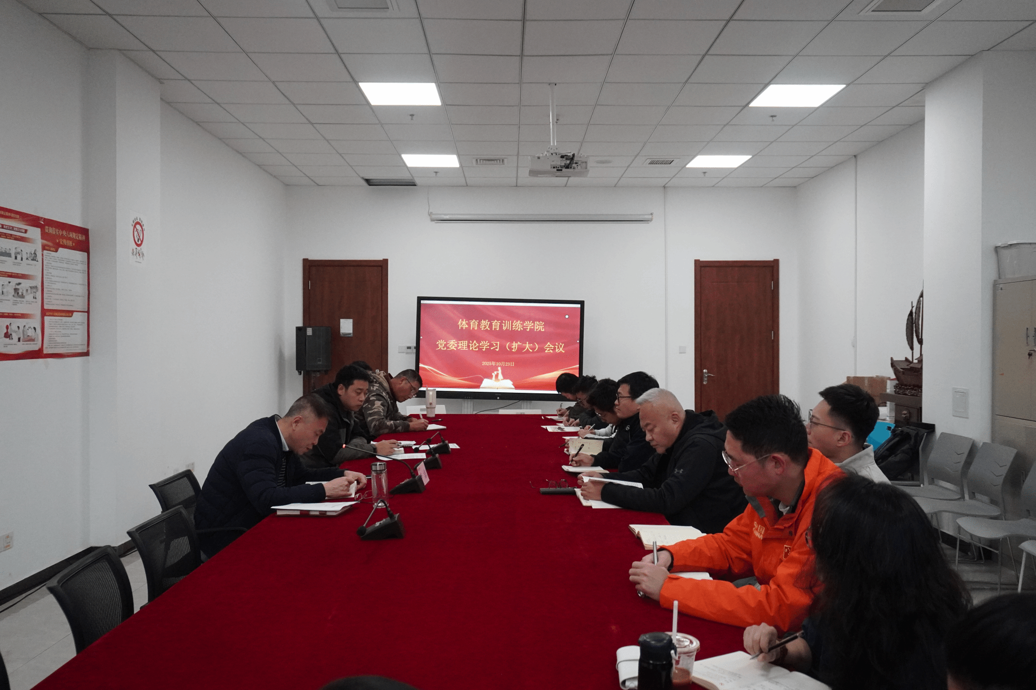 为深入学习贯彻习近平新时代中国特色社会主义思想和党的二十大精神,扎实推进学院党委理论学习中心工作,10月23日下午15:00,体育教育训练学院党委在橄榄球馆110会议室召开党委理论学习(扩大)会。学院党政领导班子、科级干部、各教研室主任、各党支部书记参加会议,会议由党委书记卢喆主持。