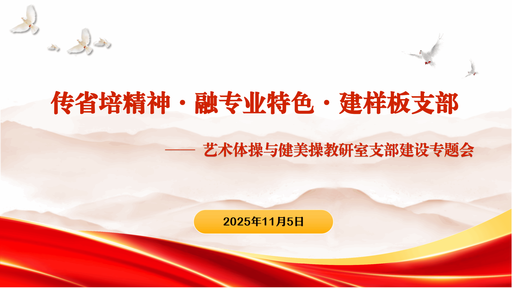此次专题会既是省培成果的转化会,更是支部锚定样板目标的动员会。在卢喆书记的指导下,艺术体操与健美操教研室党支部进一步明晰了建设方向,下一步将以此次会议为契机,抓实“六个坚持+四个引领”党建工作模式落实落地,推动党建与专业发展同频共振,全力向省级样板党支部的方向迈进。