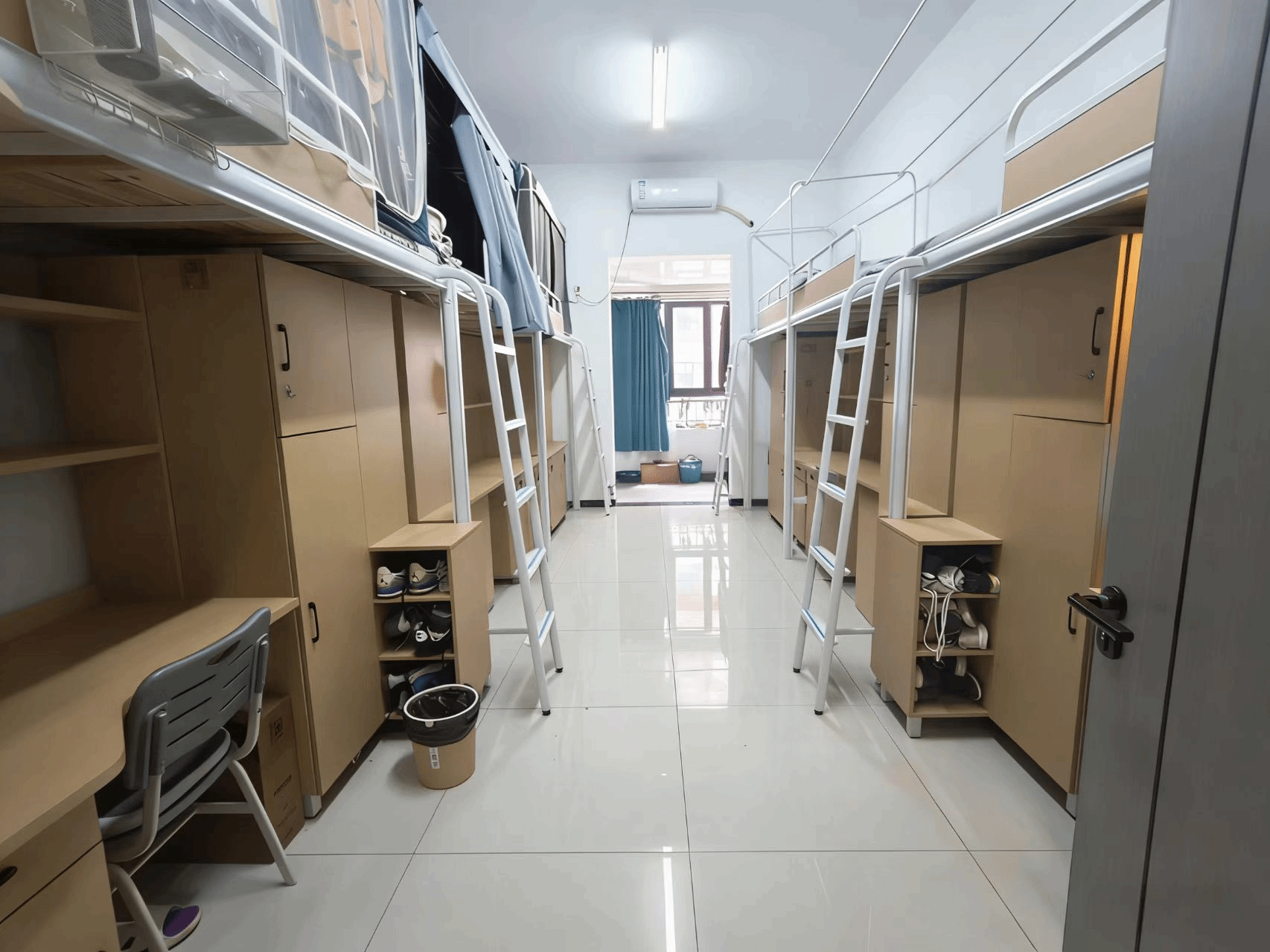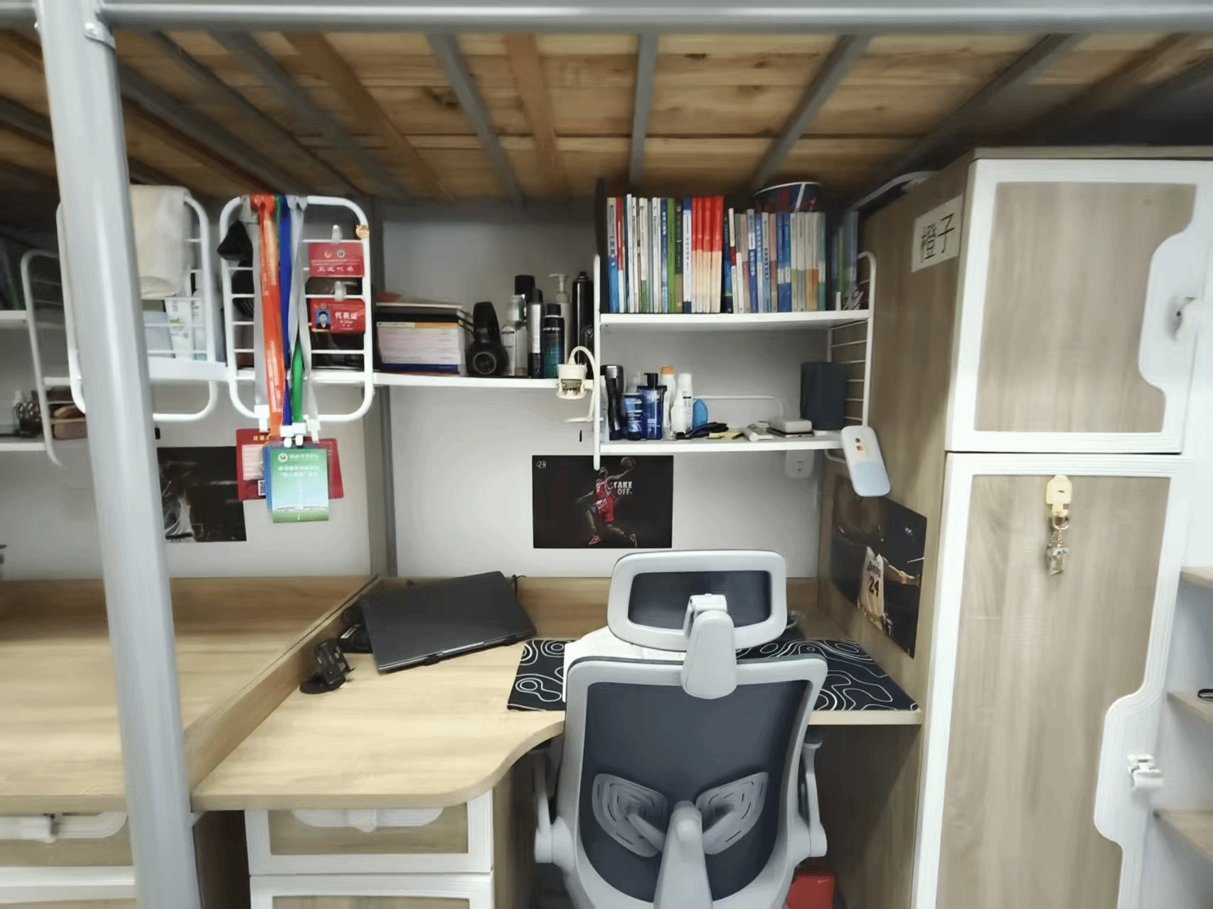 参观过程中所见皆是严谨有序的“方寸乾坤”,这既是学生自律习惯的写照,更是年级在学生管理水平的外化体现。内务方面,被褥叠放整齐划一,物品收纳科学规范,地面洁净窗明几净,细微之处尽显同学们在日常管理中“抓细、抓实、抓常”的扎实功底。更为亮眼的是创新性地将体育特色融入到宿舍文化建设中,实现了“专业素养”与“生活养成”的完美契合。这种“专业+思政”的浸润式管理模式,不仅增强了学生的集体凝聚力与归属感,更生动诠释了以文化人、以文育人的创新思维与引导能力。