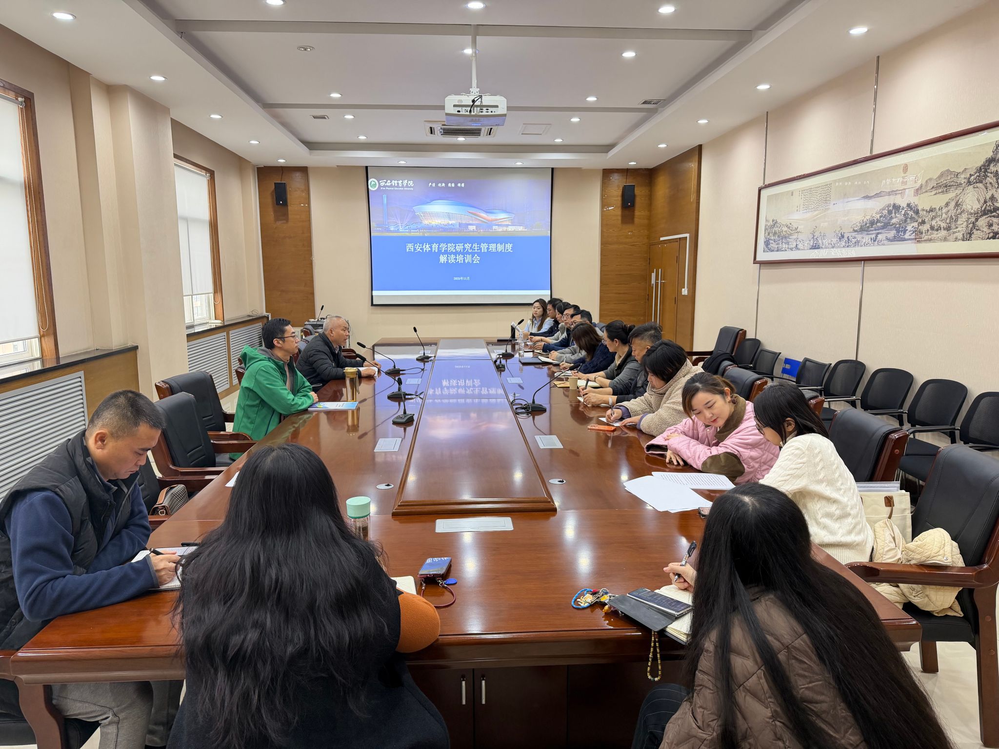 会上,研究生部副主任方程就《西安体育学院研究生硕士学位授予工作实施细则》、《西安体育学院硕士研究生培养工作规定》、《西安体育学院硕士研究生师生互选》以及研究生学位论文工作的系列文件进行了全面、系统的解读,从制度修订的背景、主要变化、执行要点以及注意事项等方面作了深入说明,并结合实际案例对制度执行中的重点、难点问题进行了细致分析,确保与会人员准确把握制度精神、熟练掌握操作流程。